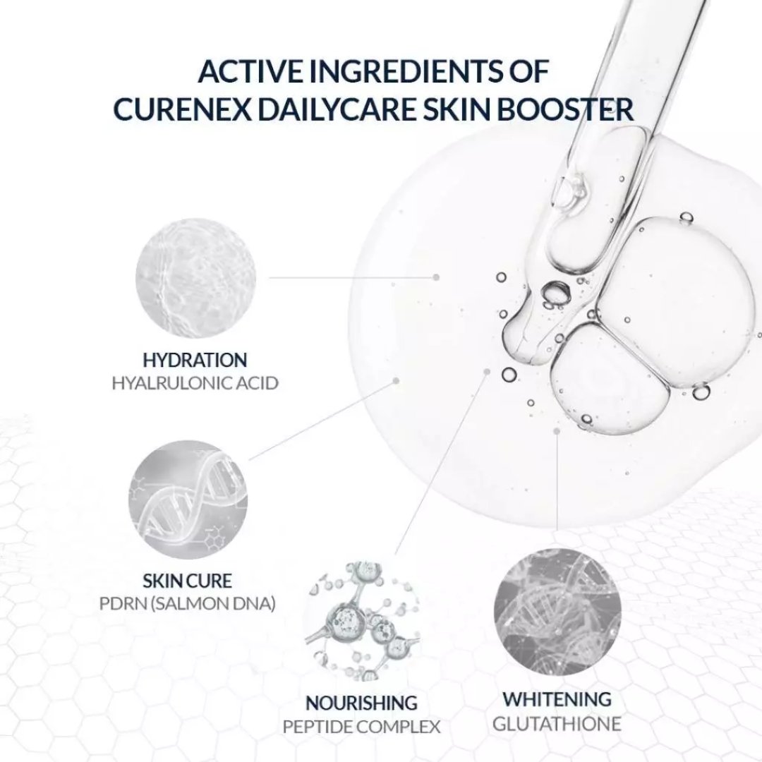 CURENEX Daily Skin Booster is a daily skincare solution designed to maintain the natural glow, elasticity, and vitality of facial skin. Formulated exclusively with naturally derived active ingredients, it supports cellular metabolism at a molecular level while delivering fast absorption and immediate hydration.